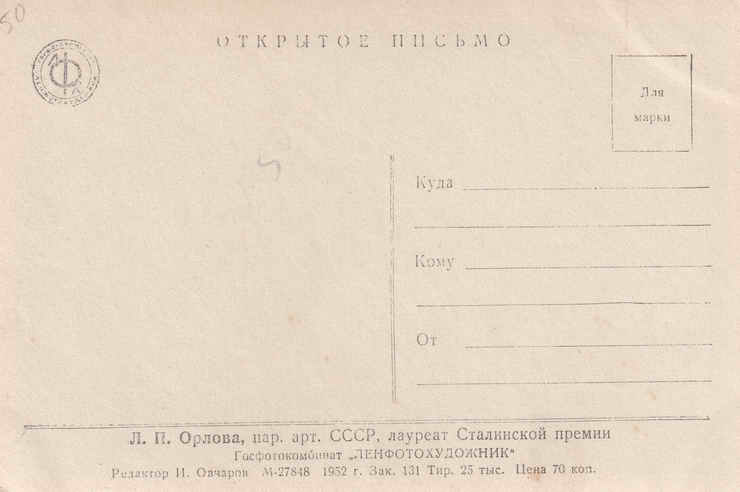Открытка. 1952 год.