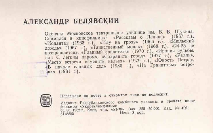 Открытка. 1982 год.
