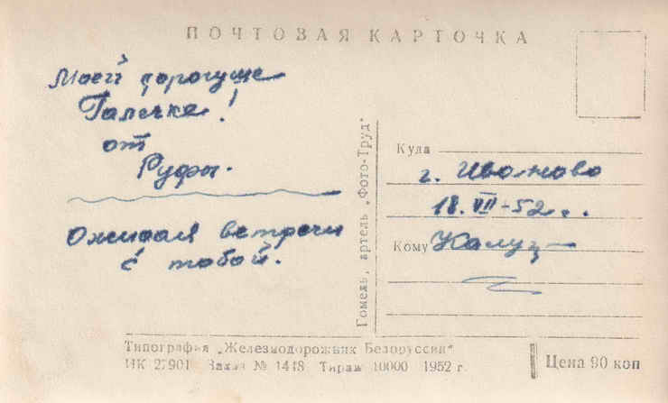 Открытка. 1952 год.