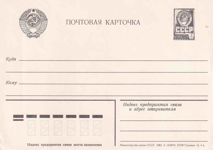 Почтовая карточка. 1983 год